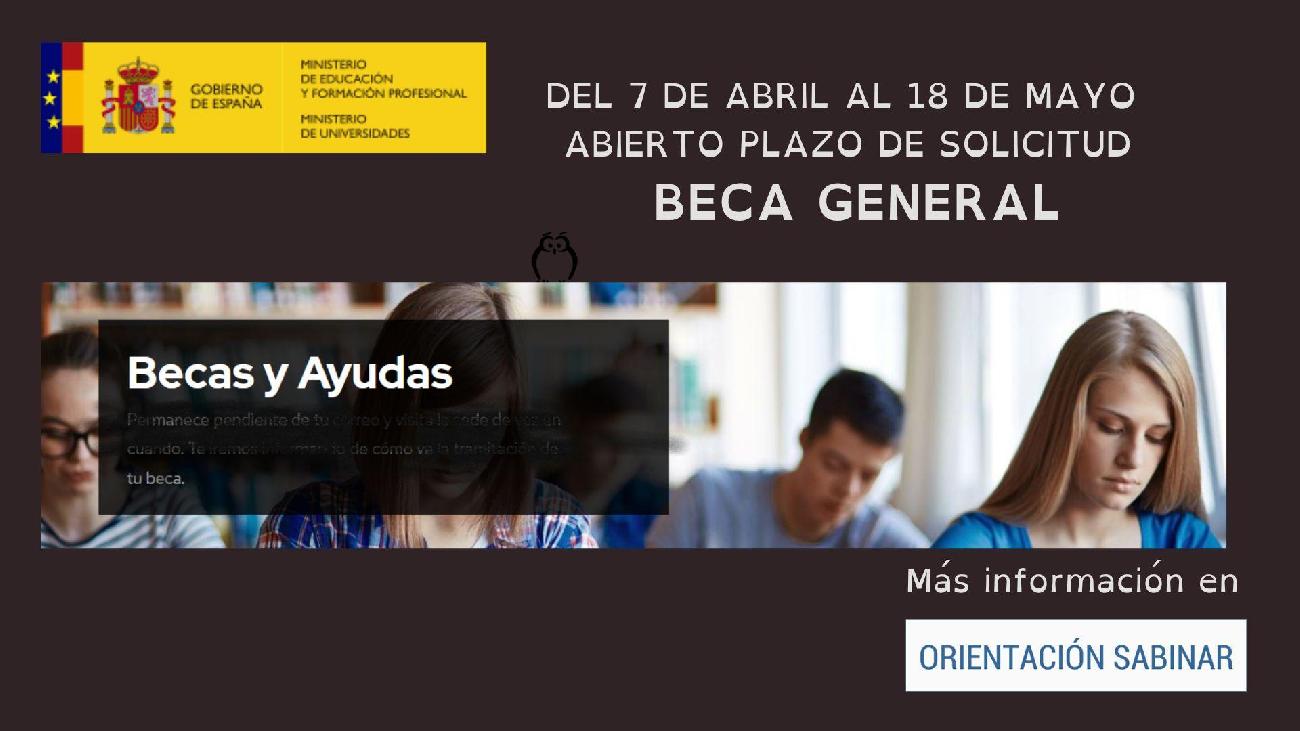 » Abierto el plazo de solicitud para la BECA GENERAL.Del 7 al 18 de mayo.
