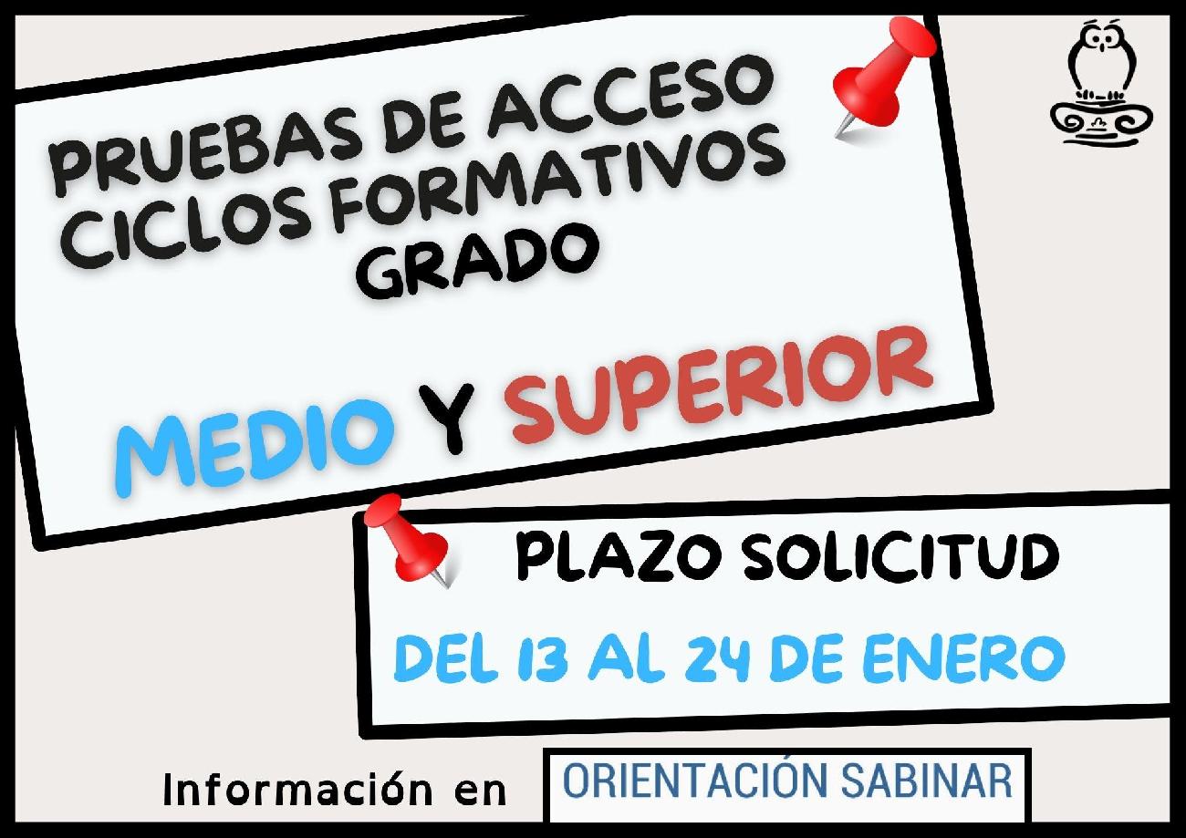 Abierto el plazo para solicitar las pruebas de acceso a ciclos medio y superior. Más información en nuestra página web-ORIENTACIÓN SABINAR-
